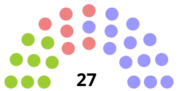 | 27 sièges de l'Assemblée législative (Majorité absolue : 14 sièges) | ||||||||||||||