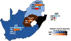 | Parti sud-africain (SAP) | 148 769 | 47,04 | 53 | |||||||||||