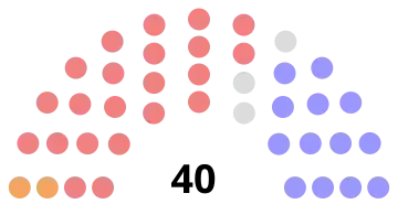 | 40 sièges de la Chambre d'assemblée (Majorité absolue : 21 sièges) | ||||||||||||||