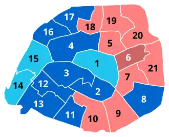 L'érosion de l'électorat de droite à Paris amorcé lors des municipales de 1995 se confirme (même si le rapport de force au premier tour est plus favorable à la droite qu'en 1997) et la gauche est en mesure de conquérir 3 nouveaux sièges sur la droite (deux gains pour Les Verts, un pour le PS plus un autre siège conquis sur le Mouvement des citoyens de Jean-Pierre Chevènement ). La gauche devient ainsi majoritaire en nombre de sièges à Paris pour la première fois sous la Ve république (situation qui perdure jusqu'en 2017 )[ 2] .