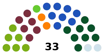 | 33 sièges du Løgting (Majorité absolue : 17 sièges) | ||||||||||||||