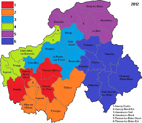 Les élections législatives françaises de 2012 se sont déroulées les 10 et 17 juin 2012 . Dans le département de la Haute-Savoie , six députés ont été élus dans le cadre de six circonscriptions , soit une de plus que lors des législatures précédentes, en raison du redécoupage électoral .