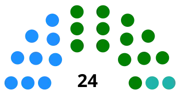 Les élections aboutissent à une très courte victoire du gouvernement sortant, qui conserve treize sièges[2].