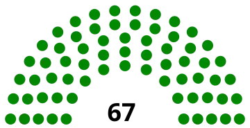 | 67 sièges de l'Assemblée nationale (majorité absolue : 34 sièges) | ||||||||||||||