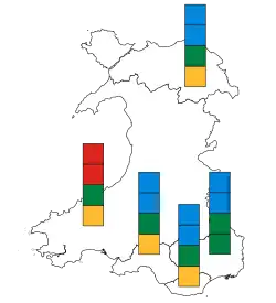 | Parti conservateur gallois (WC) | 237 388 | 25,01 | 6 | 213 773 | 22,52 | 8 | 14 | |||||||