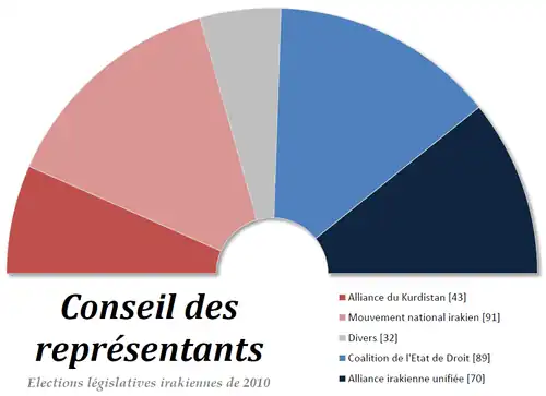 | Mouvement national irakien | 91 sièges | 2 849 612 | 24,72 % |