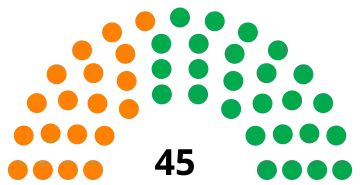 | 45 sièges à la Chambre des représentants (Majorité absolue : 23 sièges) | ||||||||||||||