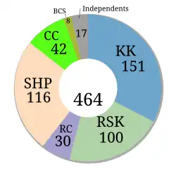 | Club des réformes (革新倶楽部, Kakushin Kurabu) | 53 | 30 | 6,5 |
