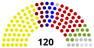 | 120 sièges de l'assemblée nationale (Majorité absolue : 61 sièges) | ||||||||||||||