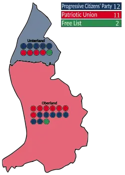 Percée historique de la Liste libre qui franchit le quorum de 8 % et obtient des sièges au Landtag. C'est la première fois depuis leurs mise en place au Liechtenstein en 1918 qu'un parti autre que le PPC et l'UP est représenté au parlement national. La liste, avec deux sièges, reste cependant dans l'opposition.
