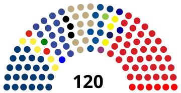 | 120 sièges de l'Assemblée (Majorité absolue : 61 sièges) | ||||||||||||||