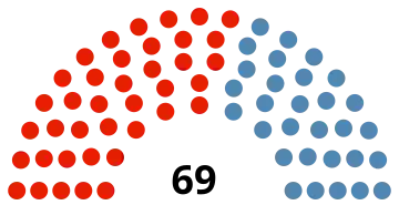 | 69 sièges de la Chambre des représentants (Majorité absolue : 35 sièges) | ||||||||||||||