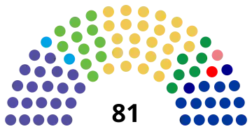 | 81 sièges du Parlement (Majorité absolue : 41 sièges) | ||||||||||||||