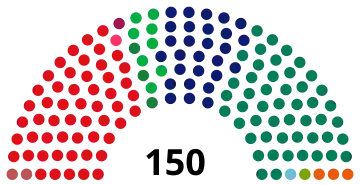 | 150 sièges de la Seconde Chambre (Majorité absolue : 76 sièges) | ||||||||||||||