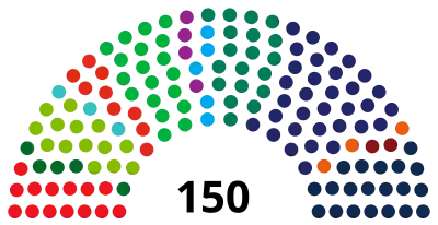 | 150 sièges de la Seconde Chambre (Majorité absolue : 76 sièges) | ||||||||||||||