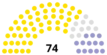 | 74 sièges de la Chambre des représentants (Majorité absolue : 38 sièges) | ||||||||||||||