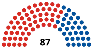 | 87 sièges de la Chambre des représentants (Majorité absolue : 44 sièges) | ||||||||||||||
