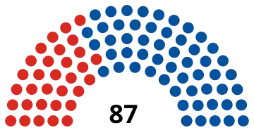 | 87 sièges de la Chambre des représentants (Majorité absolue : 44 sièges) | ||||||||||||||