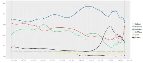 | Nouvelle-Zélande d'abord | 278 103 | 13,49 | 6 | 276 603 | 13,35 | 11 | 17 | ||||||