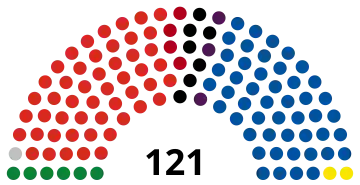 | 121 sièges de la Chambre des représentants (Majorité absolue : 61 sièges) | ||||||||||||||
