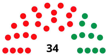 | 34 sièges de l'Assemblée nationale (majorité absolue : 17 sièges) | ||||||||||||||