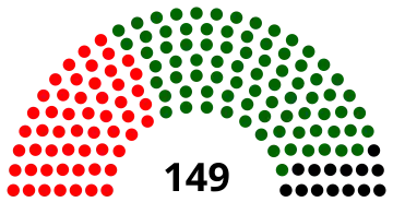 | 149 sièges du Parlement (majorité absolue : 74 sièges) | ||||||||||||||