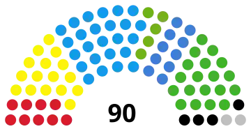| 90 sièges de l'Assemblée nationale (Majorité absolue : 46 sièges) | ||||||||||||||