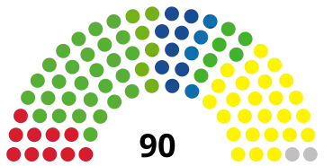 | 90 sièges de l'Assemblée nationale (Majorité absolue : 46 sièges) | ||||||||||||||