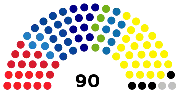 | 90 sièges de l'Assemblée nationale (Majorité absolue : 46 sièges) | ||||||||||||||