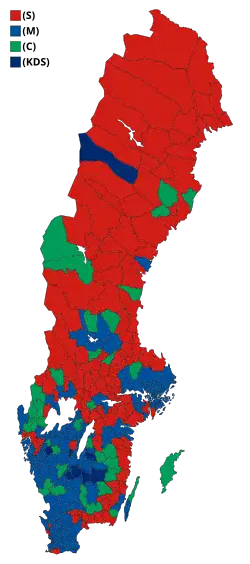 | Parti du centre | Olof Johansson | 465 175 | 8,50 | −2,80 | 31 | −11 | |