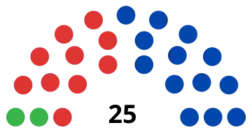 | 25 sièges à l'Assemblée (majorité absolue : 13 sièges) | ||||||||||||||