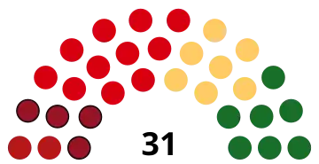 Le nombre de conseillers municipaux est établi en fonction de la population de la commune[1]. Les communes de plus de 100 001 habitants comptent 25 conseillers et un conseiller supplémentaire pour 100 000 habitants ou fraction, ainsi qu'un conseiller supplémentaire si le total de conseillers municipaux constitue un nombre pair. Saragosse comptant officiellement 555 424 habitants recensés à la fin de l'année , elle dispose de 31 conseillers municipaux.