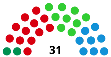 | 31 conseillers municipaux (majorité absolue : 16 conseillers municipaux) | ||||||||||||||