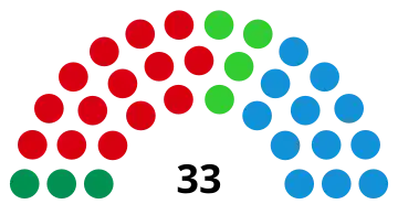 | 33 conseillers municipaux (majorité absolue : 17 conseillers municipaux) | ||||||||||||||