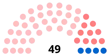 | 49 sièges au conseil municipal (majorité absolue : 25 sièges) | ||||||||||||||