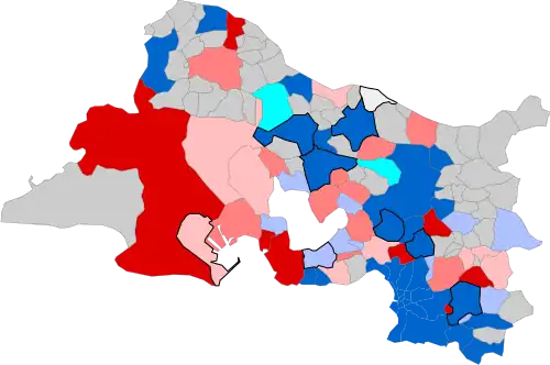 Le scrutin est marqué par des changements notoires. La gauche subit plusieurs revers dans les grandes villes et les villes moyennes avec notamment la perte d'Aubagne par le PCF, Châteauneuf-les-Martigues, Salon-de-Provence. D'autres localités moins importantes telles que Cabriès, Lambesc, Lançon-Provence et Simiane-Collongue. La droite devient majoritaire dans le département avec ses gains et confirme ses maires sortants à Aix-en-Provence, Bouc-Bel-Air, Châteaurenard, La Ciotat, Rognac, Tarascon et Trets. L'UDI conserve quant à elle Eguilles, Eyguières et Gémenos.