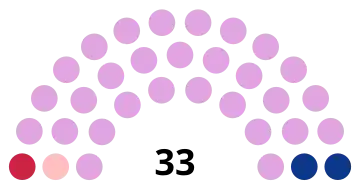 | Conseillers municipaux | 7 | 11 | 15 | 19 | 23 | 27 | 29 | 33 | 35 | 39 | 43 | 45 |