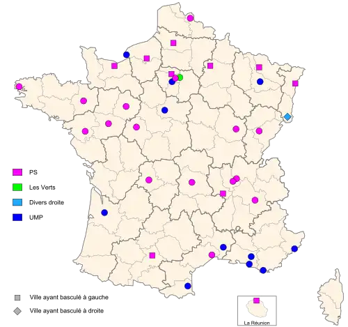 Bilan des élections sur les 18 communes de plus de 150 000 habitants : 13 maires PS et cinq maires UMP ont été élus.
