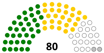 | Coalition citoyenne pour le changement (CCC) | 1 856 393 | 41,46 | 73 | 27 | 3 | 103 | ||||||