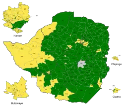 | Union nationale africaine du Zimbabwe - Front patriotique (ZANU-PF) | 2 515 607 | 56,18 | 137 | 33 | 7 | 177 | ||||||