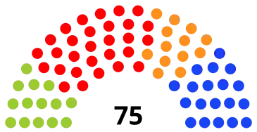 - ↑ les germanophones y sont remplacés par leur suppléant et siègent en observateur à la communauté germanophone de Belgique
