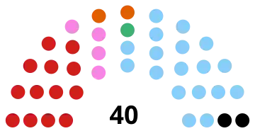 | 40 sièges du conseil régional (Majorité absolue : 21 sièges) | ||||||||||||||