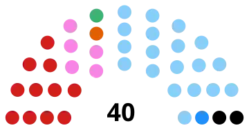 | 40 sièges du conseil régional (Majorité absolue : 21 sièges) | ||||||||||||||
