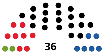 36 sièges du Landtag (Majorité absolue : 19 sièges) |