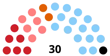 | 30 sièges du conseil régional (Majorité absolue : 16 sièges) | ||||||||||||||