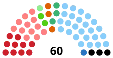| 60 sièges du conseil régional (Majorité absolue : 31 sièges) | ||||||||||||||