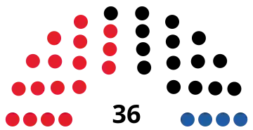 36 sièges du Landtag (Majorité absolue : 19 sièges) |