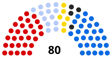 | 80 sièges du conseil régional (Majorité absolue : 41 sièges) | ||||||||||||||