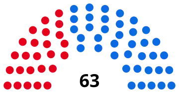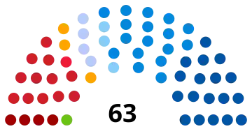 | 63 sièges du conseil régional (Majorité absolue : 32 sièges) | ||||||||||||||