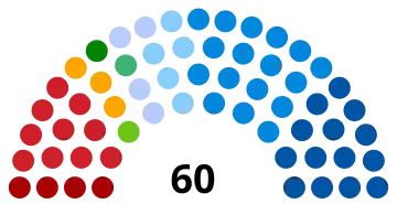 | 60 sièges du conseil régional (Majorité absolue : 31 sièges) | ||||||||||||||